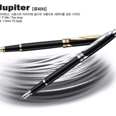 : 병잉크 및 카트리지 겸용 ■ 펜촉 : 스텐스틸에 금장문양을 넣은 투톤 F Nib ■ 캡/바디: 메탈에 블랙락카 도장 ■ 장식부 : 골드도금 ■ 캡 분리형으로 사용이 간편합니다. ■ 중결링에 JUPITER 목성 문양을 프린팅하여 포인트를 주었습니다. ■ 클립에 Pierre Cardin 로고를 음각으로 인그레이빙 |